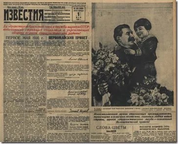 Stalin und MamlakatDa von dem Foto des Führers mit der Tochter des in Ungnade gefallenen Volkskommissars Markisow eine unüberschaubare Menge an Plakaten, Gemälden, Statuen und anderem Agitationsmaterial hergestellt worden war, ließ sich dieses unmöglich aus dem Verkehr ziehen. Deshalb beschlossen die Ideologen im Schutz des allgemeinen Trubels, die unzuverlässige Gelja in die robuste Bäuerin Mamlakat „umzubenennen“. Vielleicht war es ihnen auch schlicht egal. Was machte es schon für einen Unterschied, ob das Mädchen tadschikisch oder burjatisch war? Also entschieden sie, das sechsjährige Mädchen auf Stalins Armen zur Baumwollarbeiterin Mamlakat zu erklären, obwohl sie schon rein körperlich unmöglich den Leninorden für die harte Arbeit hätte erhalten können.