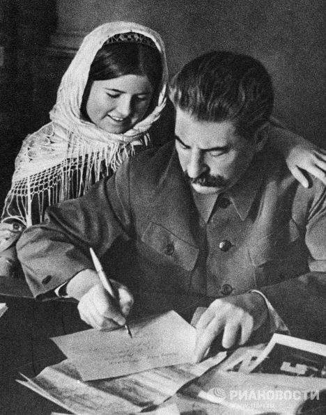 Der gerührte Führer hob das Mädchen auf die Arme und küsste sie. Dieser Moment wurde von zahlreichen anwesenden Fotografen und Kameraleuten festgehalten. Bereits am nächsten Tag erschien das Foto Stalins mit Gelja auf dem Arm in allen Zeitungen, versehen mit der Aufschrift: